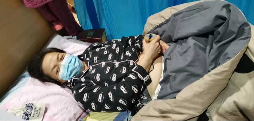 “针刺完,可以做穴位贴敷治疗。我们用的是代温灸膏做贴敷,因为舱内不比病房,床位比较密集,不能见明火,艾灸操作风险极大,用代温灸膏贴敷中脘、天枢、上巨虚、关元这些穴位可以起到提高免疫力,舒缓情绪的作用,有些患者我们还会加做扶阳罐温熨神阙,疗效会更佳。”