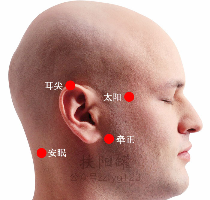 正坐或侧伏坐位。在颞部,当眉梢与目外眦之间,向后约1横指的凹陷处。 -