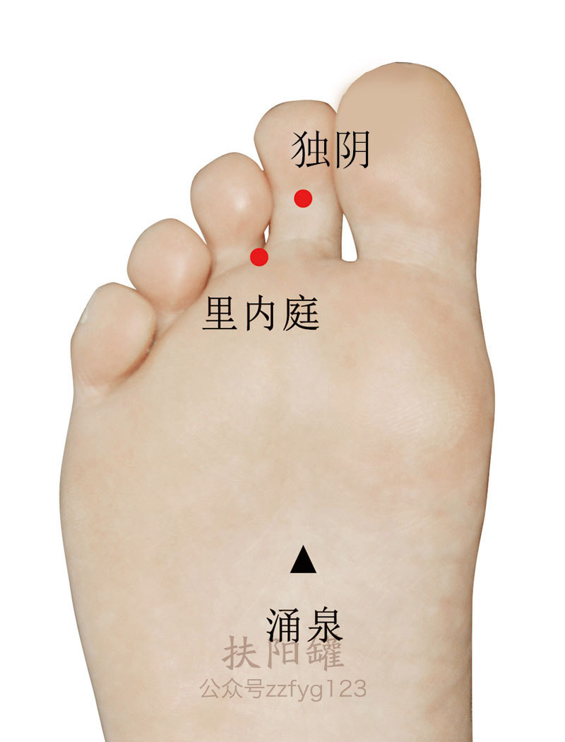 仰卧或正坐,仰足。第2足趾掌面的远端趾关节横纹中点处,即为本穴。