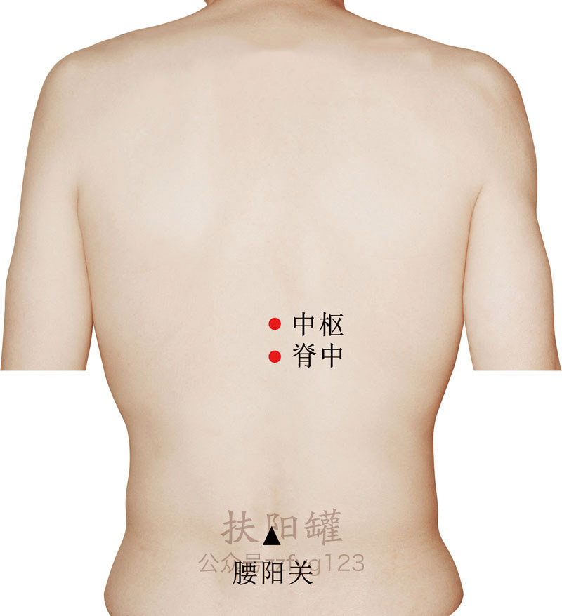 正坐或俯卧位。从两侧肩胛下角连线与后正中线相交处所在椎体为第7胸椎,垂直向下推3个椎体(即第10胸椎),该椎体棘突下缘凹陷处,即为本穴。 -