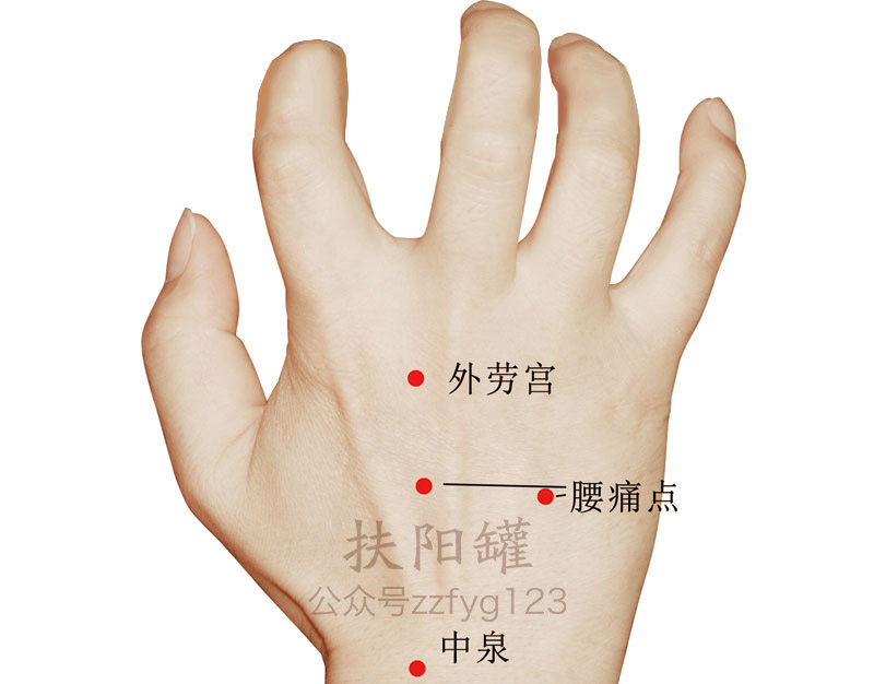 第2步:在腕背横纹上,指总伸肌腱(指示、中、环、小指四个手指的肌腱)的拇指侧(桡侧)凹陷中,即为本穴。 -
