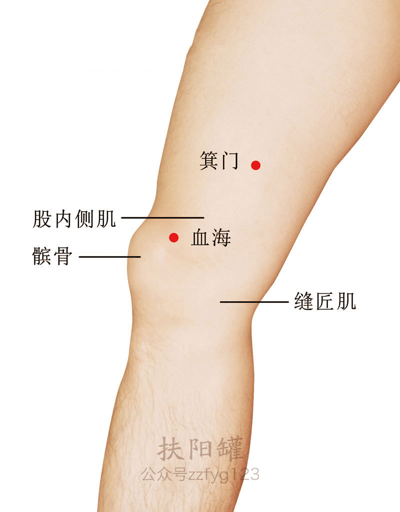 在大腿内侧,当血海与冲门连线上,血海上6寸。 -