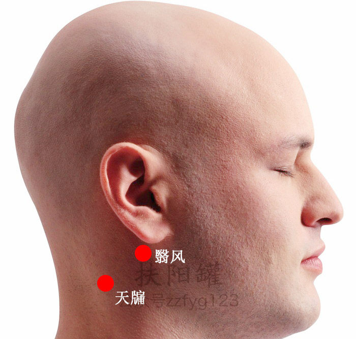第2步:在耳垂后方可触及一凹陷,此凹陷张口时更明显处,即为本穴。 -