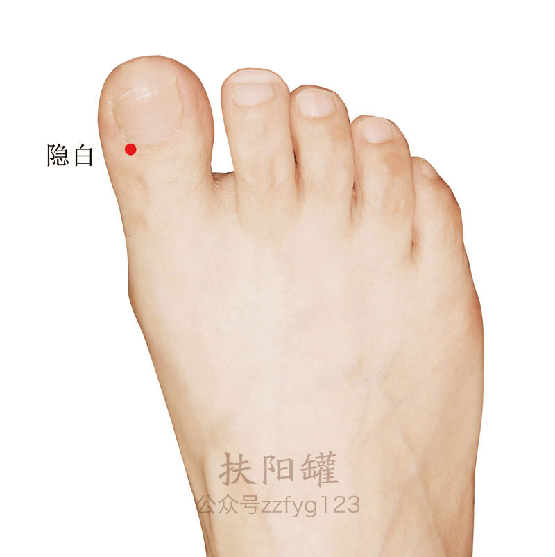 在足大趾末节内侧,距趾甲角0.1寸。 -