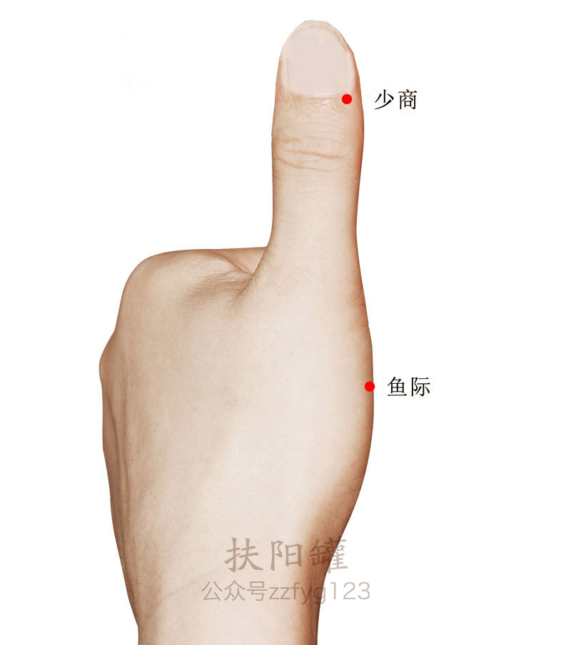 第2步:在第1掌指关节后,第1掌骨中点,掌后白肉隆起(大鱼际肌)的边缘(赤白肉际),按压有酸胀处,即为本穴。 -