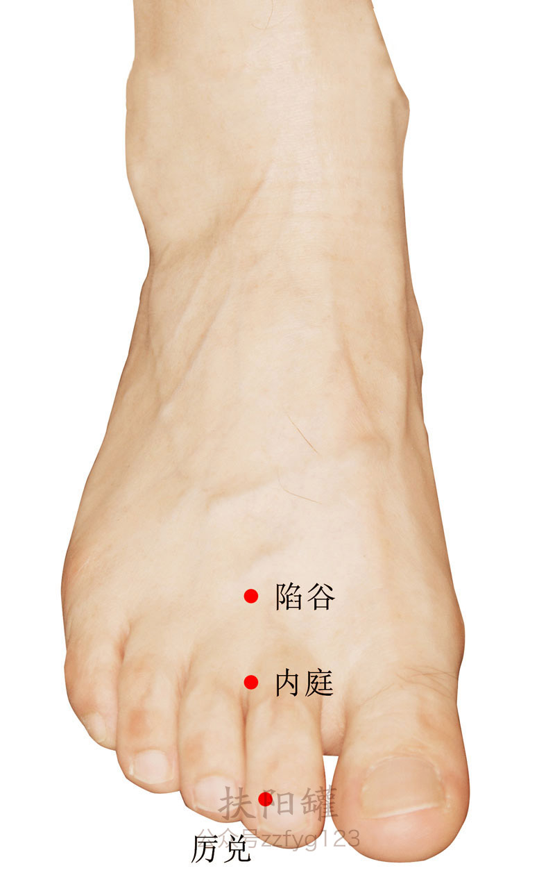 现代常用于调理急慢性胃炎、急慢性肠炎、齿龈炎、扁桃体炎、跖趾关节痛等。配合谷调理牙龈肿痛;配太冲、曲池、大椎等调理热病。 -