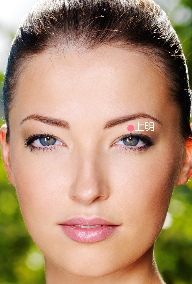 额部,眉弓中点,眶上缘下方凹陷处,即为本穴。