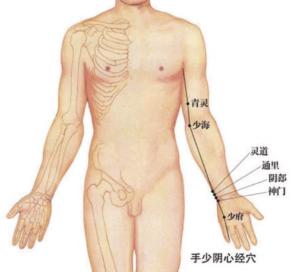 极泉、少海调理心病、肩臂疼痛麻木;神门、阴郄、少冲调理心与神志病,其中神门尤治失眠,阴郄又治血证;通里调理舌强不语。 -